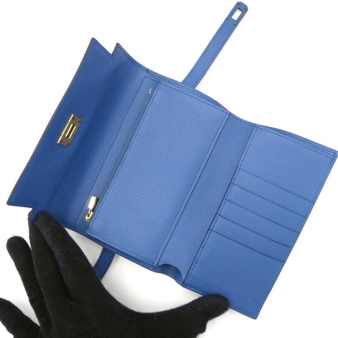 エルメス ケリーウォレット ヴォーエプソン ブルー ミディアム 三つ折り財布
